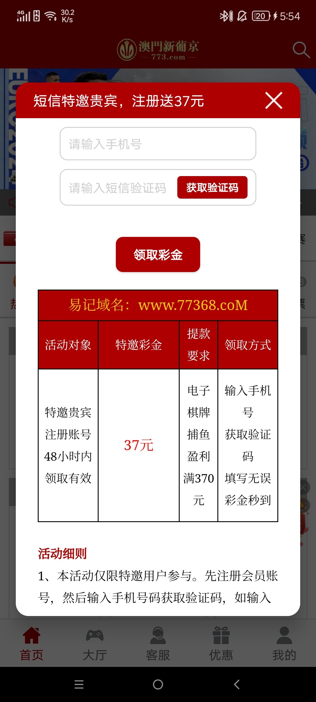 自助特邀,注册绑卡下载APP送37,优惠,输入手机号,自助申请特邀彩金秒到账,亲测!