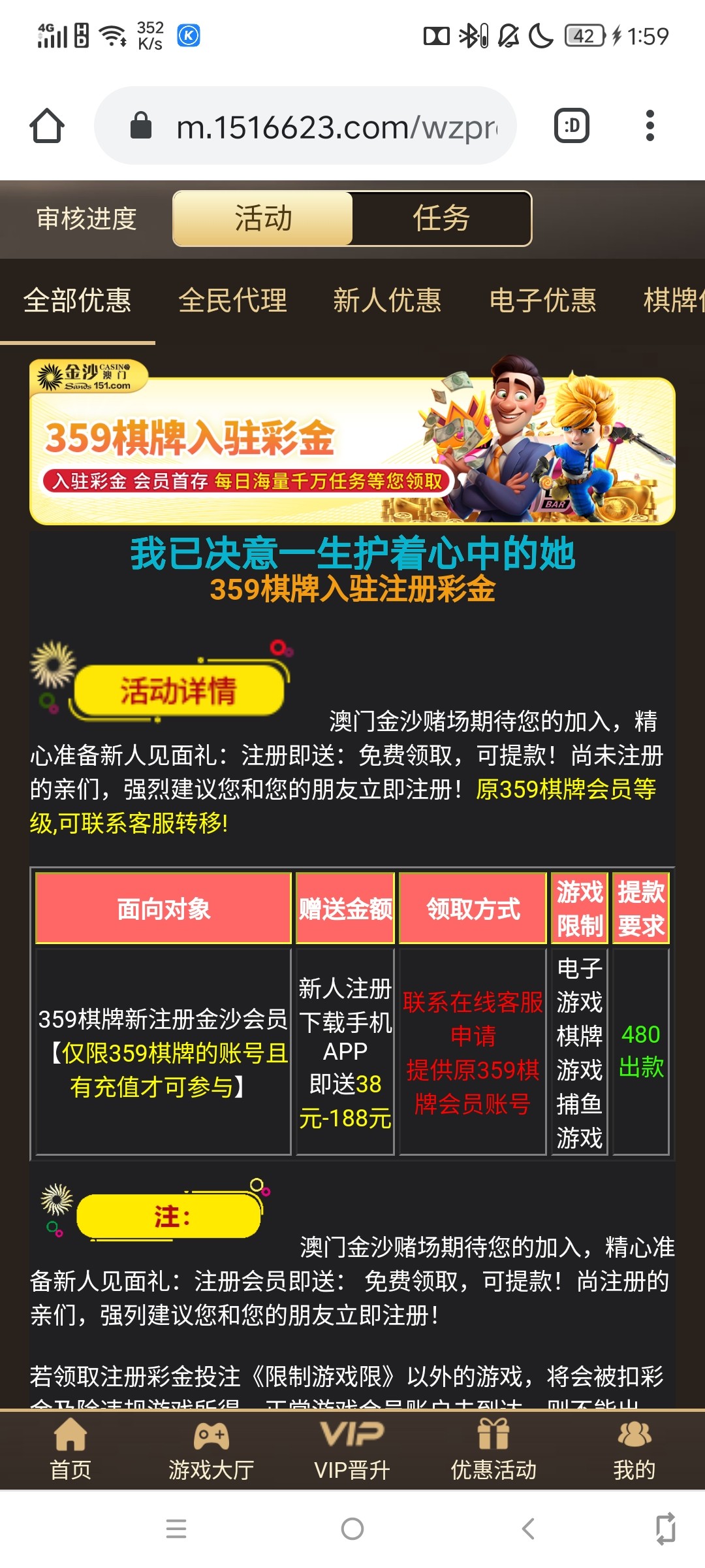 359棋牌老用户在151金沙注册绑卡联系客服申请38-188彩金,下载APP系统自动弹出28彩金,出款自测!