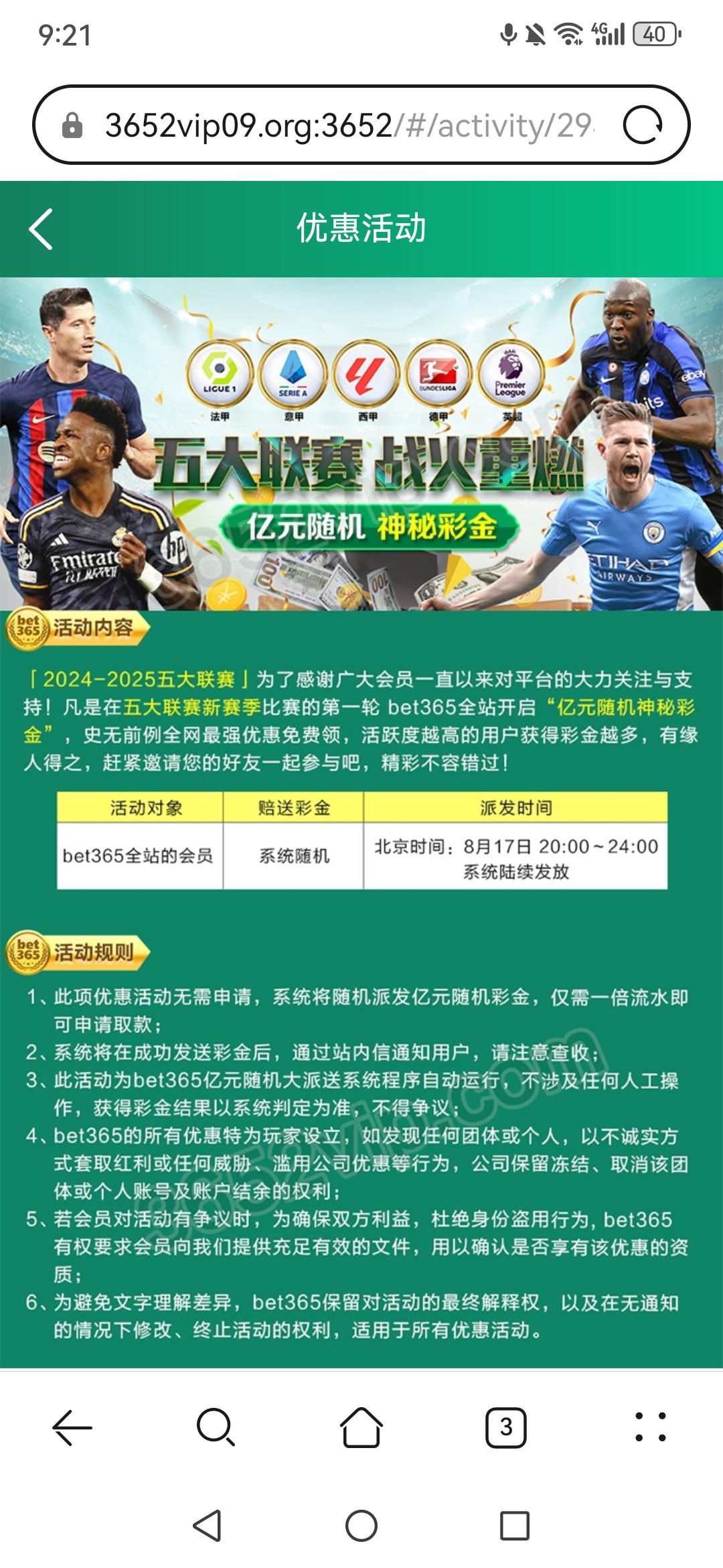 【Bet365】五大联赛开赛彩金18以上