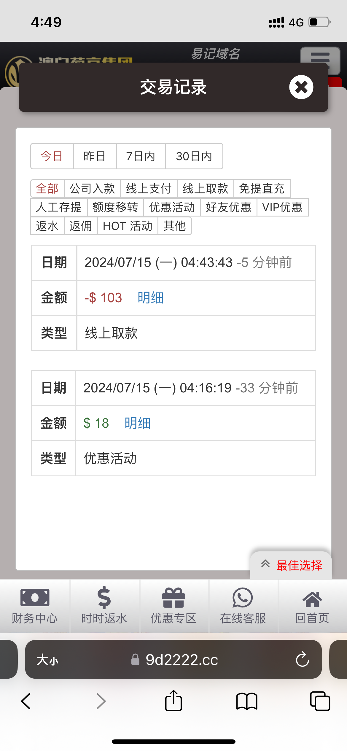 出款情况:自测