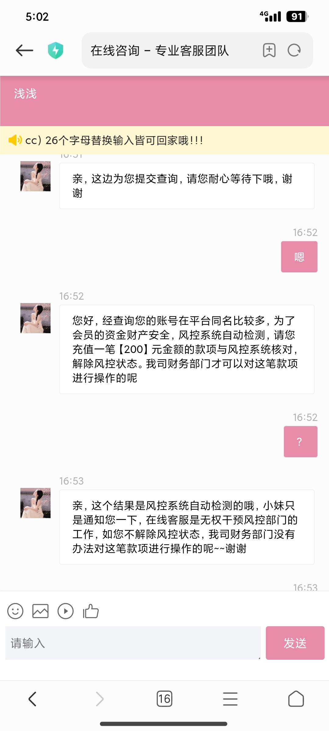 这个大黑台打电话特邀送8块,打出来400不让提现要充值200还说什么风控!