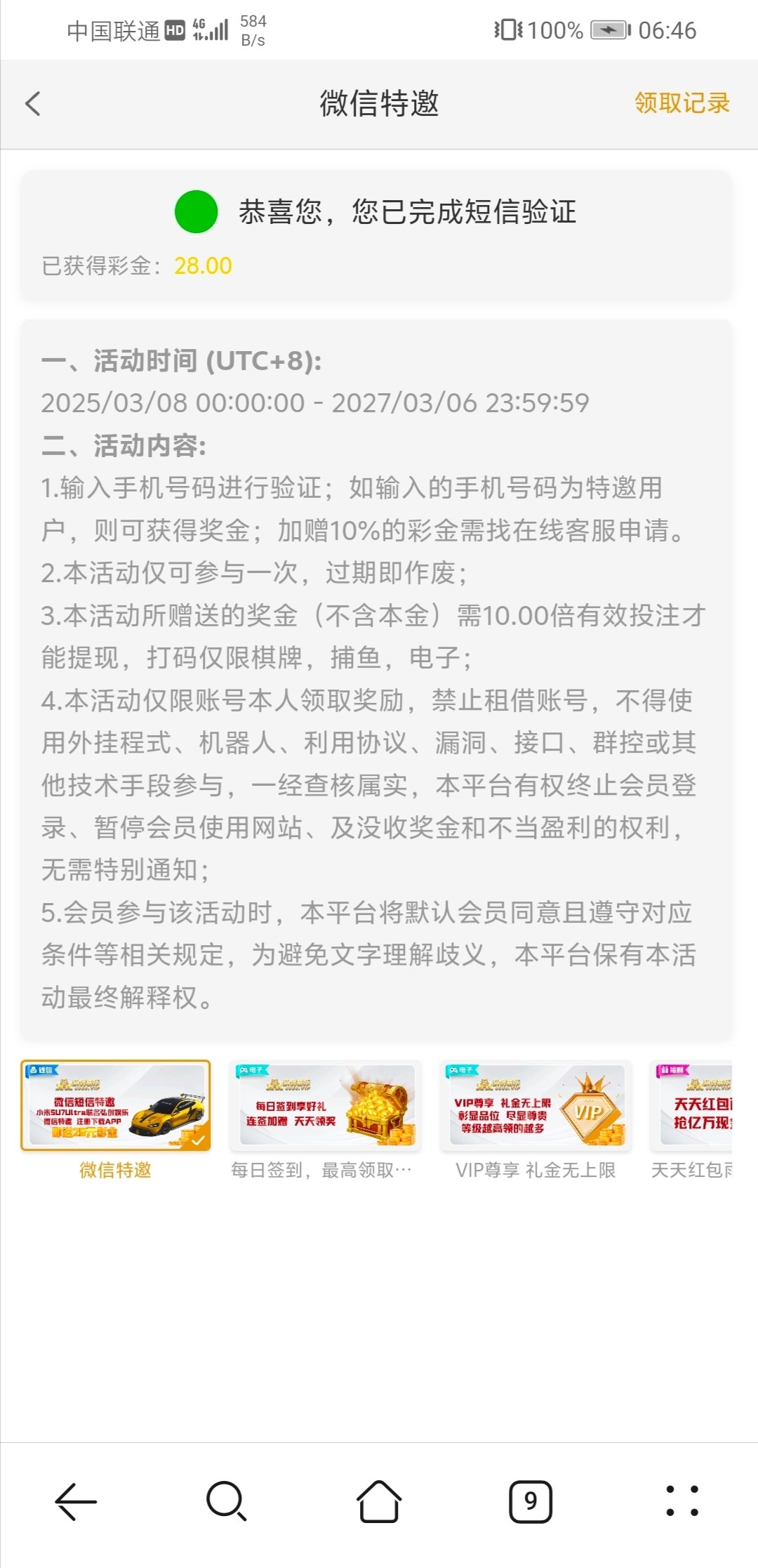 优惠里面验证特邀送28