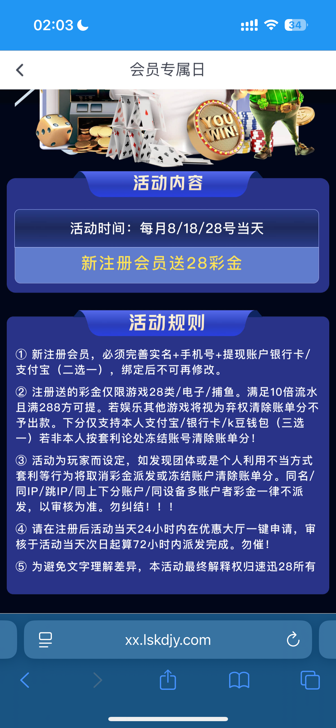 每月8~18号~28号。注册的新用户即可申请,绑定基本信息,在优惠中心一键申请 地址