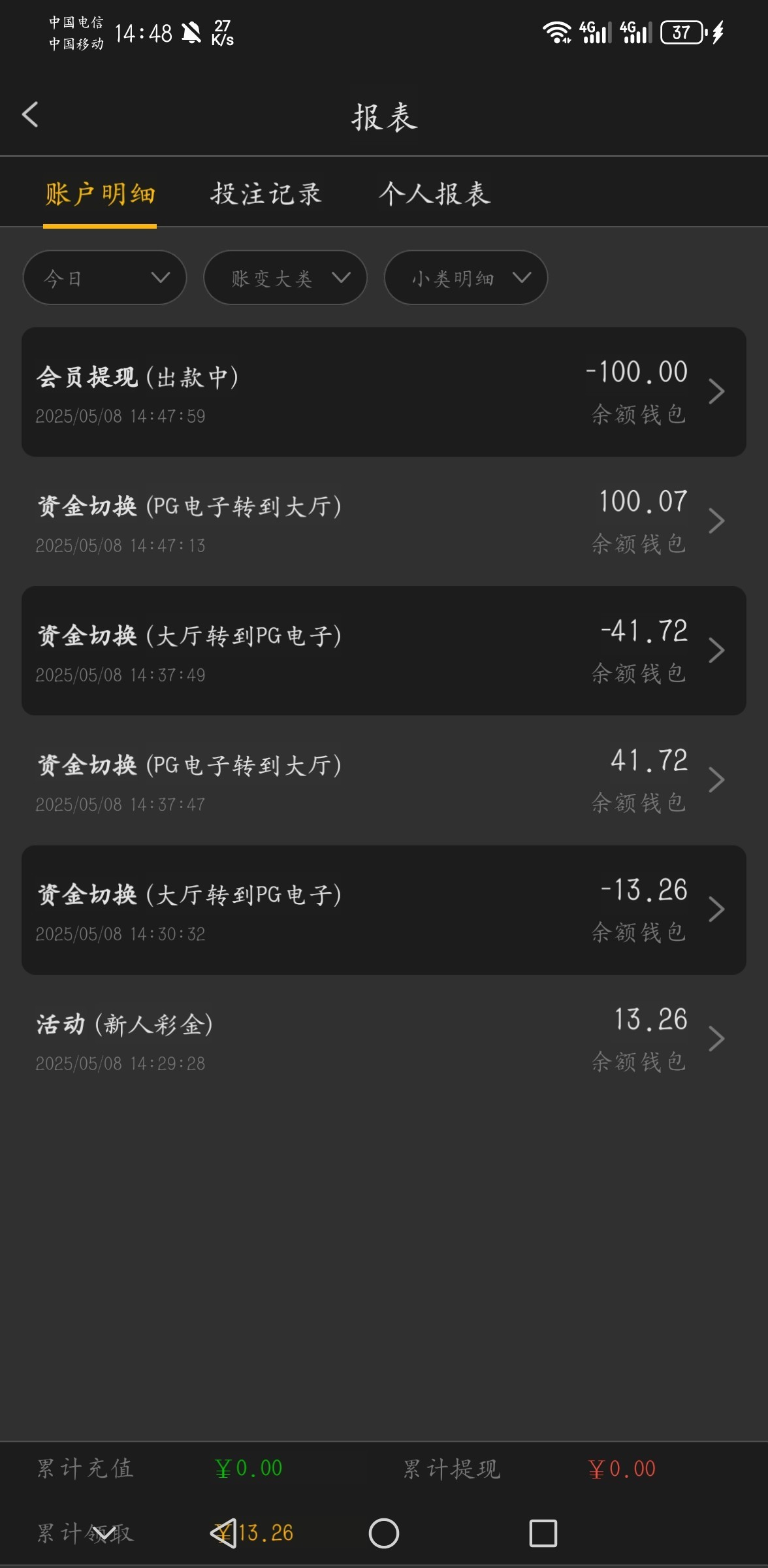 出款情况:自测(