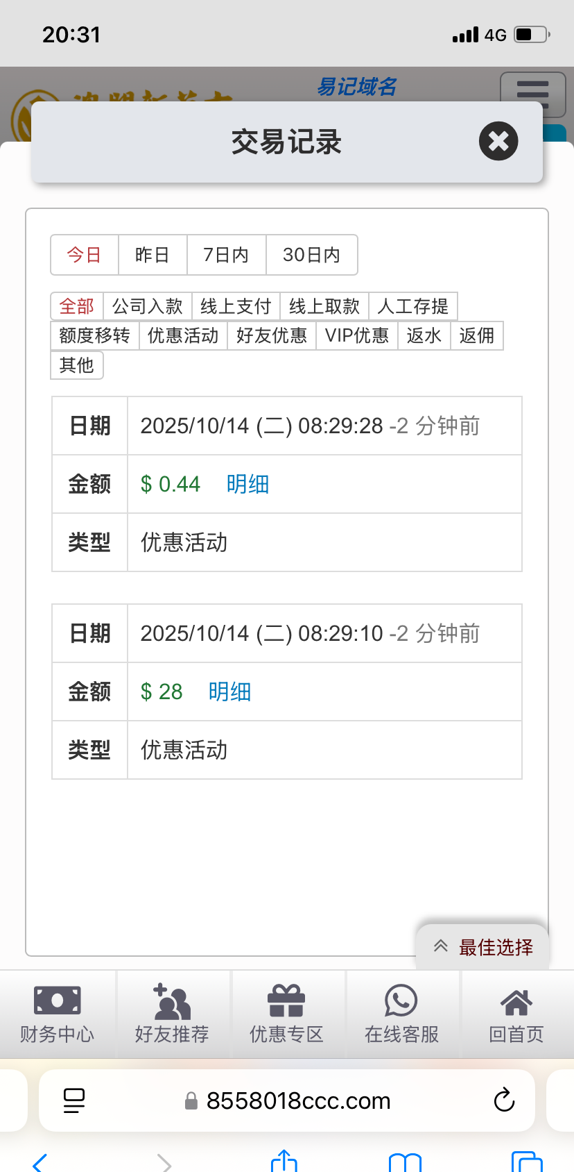 出款情况:自测(