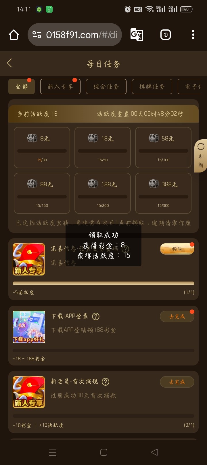 绑定好在每日任务里面 过几分钟刷新就可以领