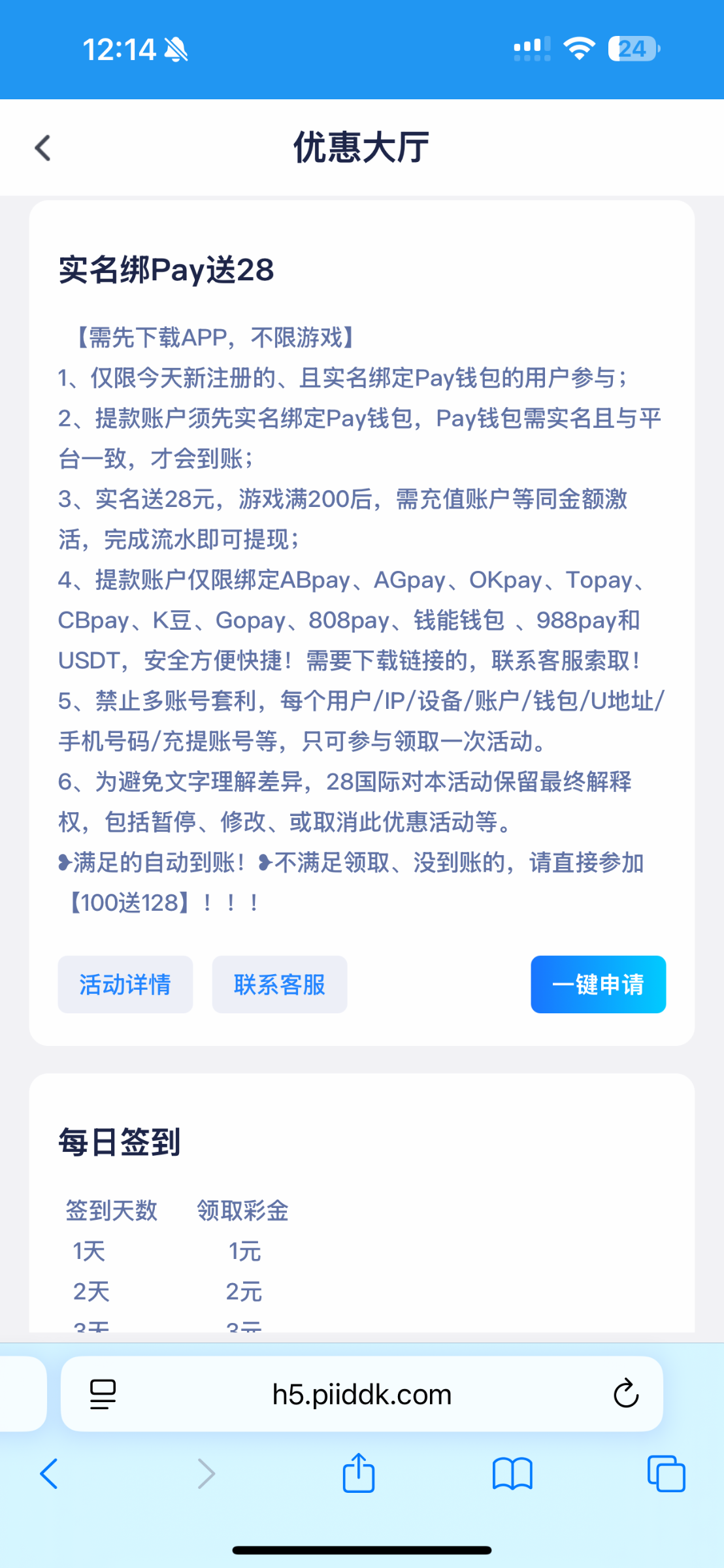 注册先绑定卡再绑定钱包送28彩金 玩过的别去了